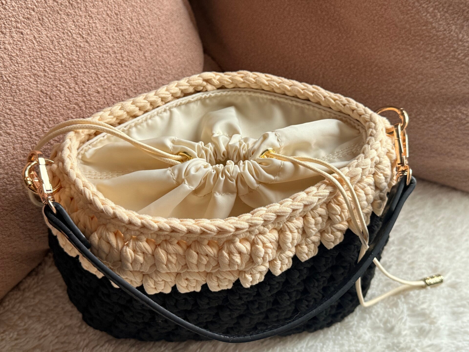 Pratique en toutes circonstances, le sac SHINTO possède un pochon intérieur en satin qui ajoute de l'élégance à sac simplicité. Il contient plusieurs poches intérieures.